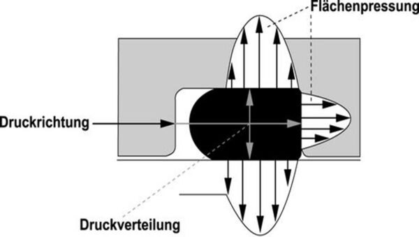 Die Dichtwirkung des O‑Rings wird durch die elastische Verformung seines Querschnitts (Schnurdurchmesser d2) in einem entsprechend gestalteten Einbauraum erzeugt. Dabei wird der kreisförmige Querschnitt in einen elliptischen verformt, der den Dichtspalt an der Dicht- bzw. Kontaktfläche und am Einbringgrund verschließt. Dadurch wird eine Flächenpressung erzeugt, die zur Erzielung einer Dichtwirkung nötig ist.